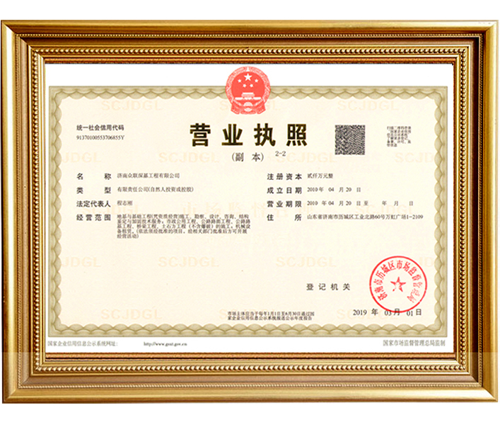 山東眾聯(lián)恒信工程集團有限公司成立于2010年4月20日,注冊資金2000萬元,固定資產(chǎn)8500萬元,公司主要從事地基基礎(chǔ)、勘察、設(shè)計等方面的專業(yè)承包,地基基礎(chǔ)專業(yè)施工資質(zhì)壹級。